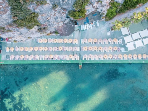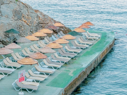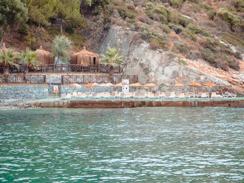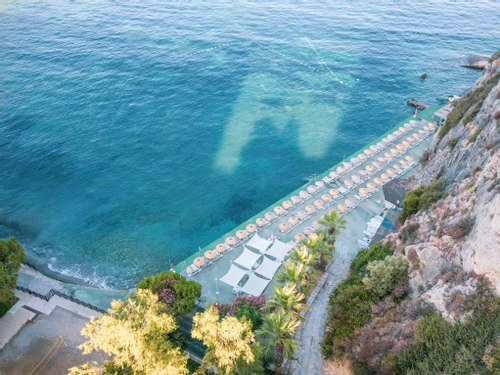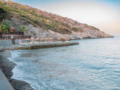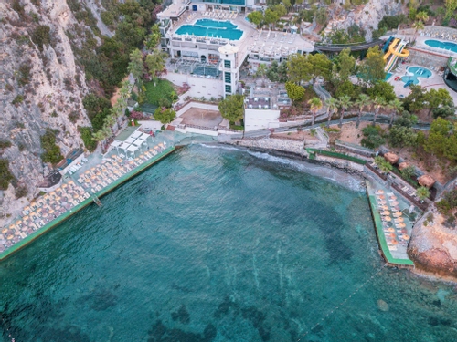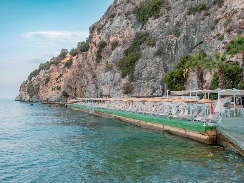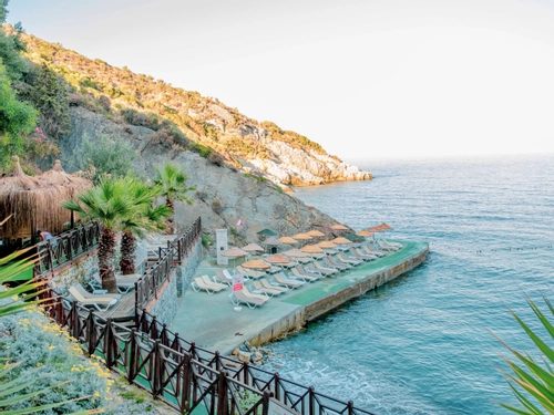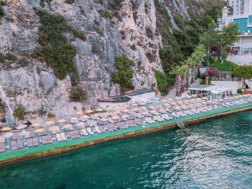 Tesis denize sıfır konumda bulunmakta olup, kendine ait koya sahiptir. Plajı, platform plajdır.